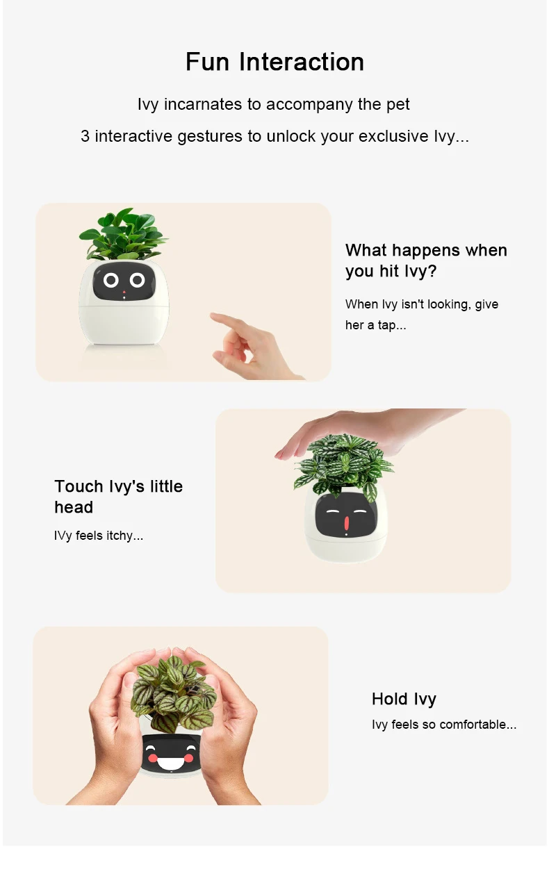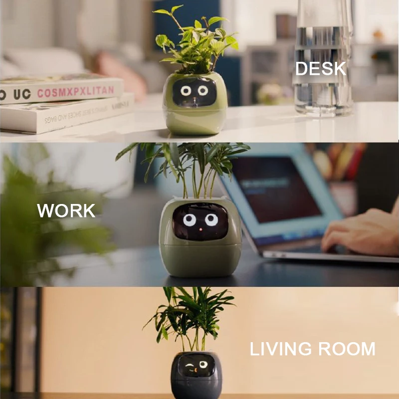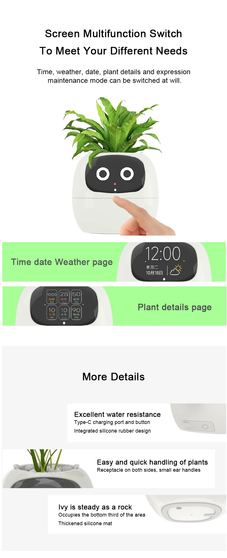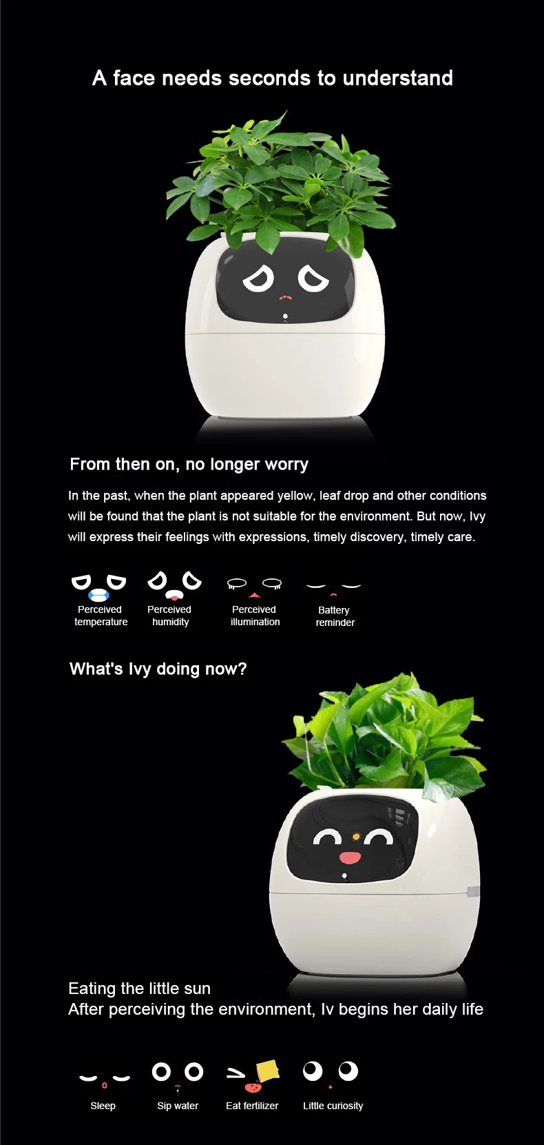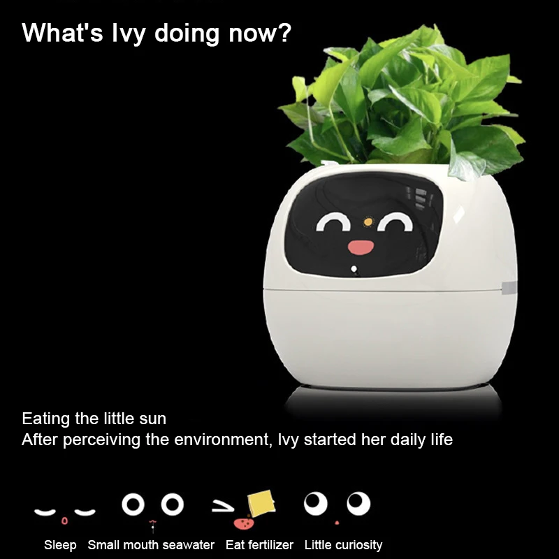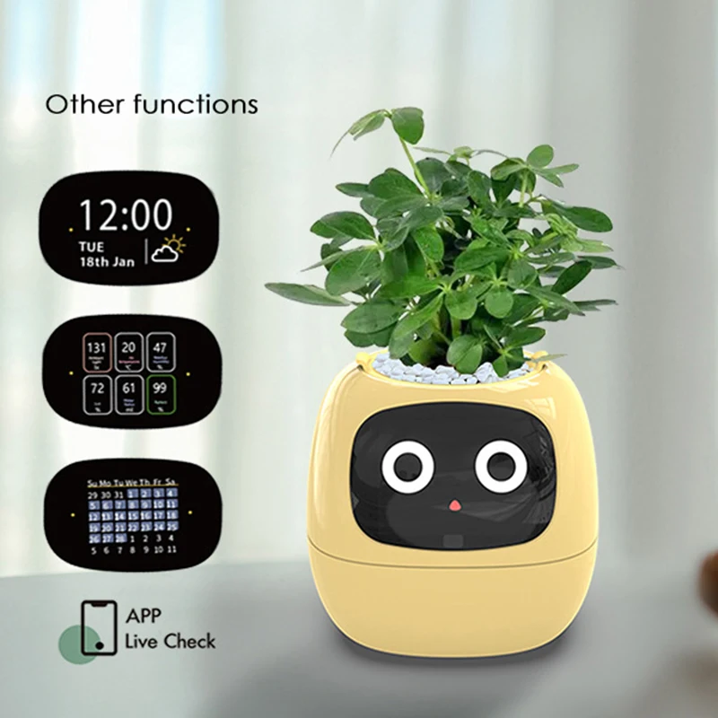 Artificial Intelligence AI Pet Flowerpot Planting Robot 7 Smart Sensors Smart Planter Plant Time Temperature Display Flower Pots